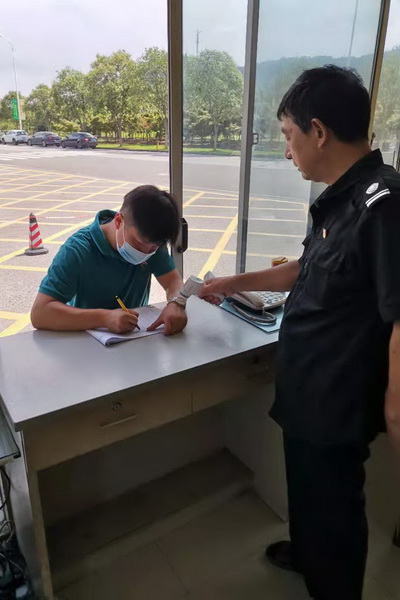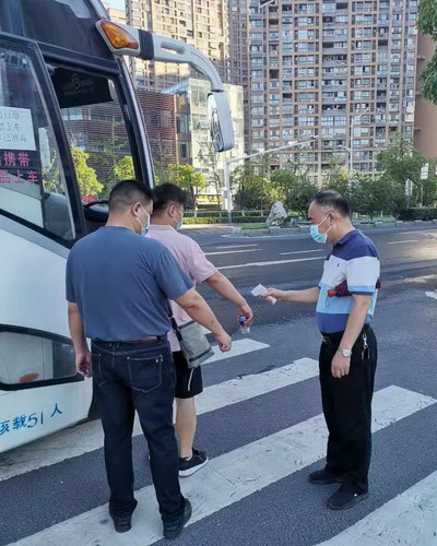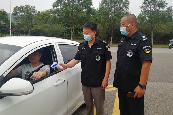 员工测量体温后再上班车 自驾员工早上测量体温后进公司